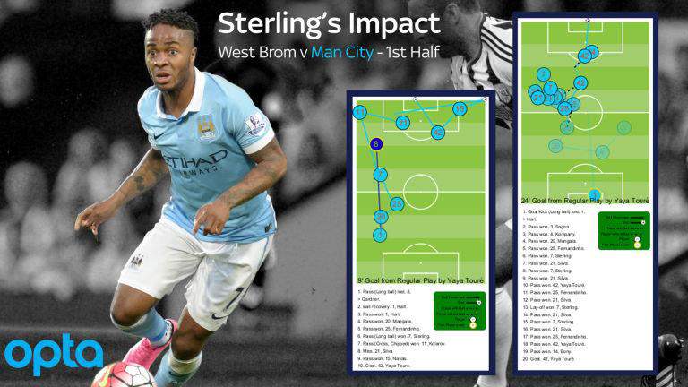 Tempo, jakým se rozběhl, bylo rozhodně proti chuti jeho strážce Craiga Gardnera. Než aby záložník West Bromwiche riskoval, že mu Sterling pláchne, raději rychlonožku podrazil. Sterling byl s naměřenou rychlostí 32,44 km/h nejrychlejším hráčem utkání. „Raheem dá naší hře v útoku nové možnosti. Přinesl nám rychlost v přechodové fázi z obrany do útoku. Když máme vepředu takového rychlíka, budou se soupeřovi obránci muset hodně rozmýšlet, zda podpoří útok svého týmu,“ řekl kapitán City Vincent Kompany.