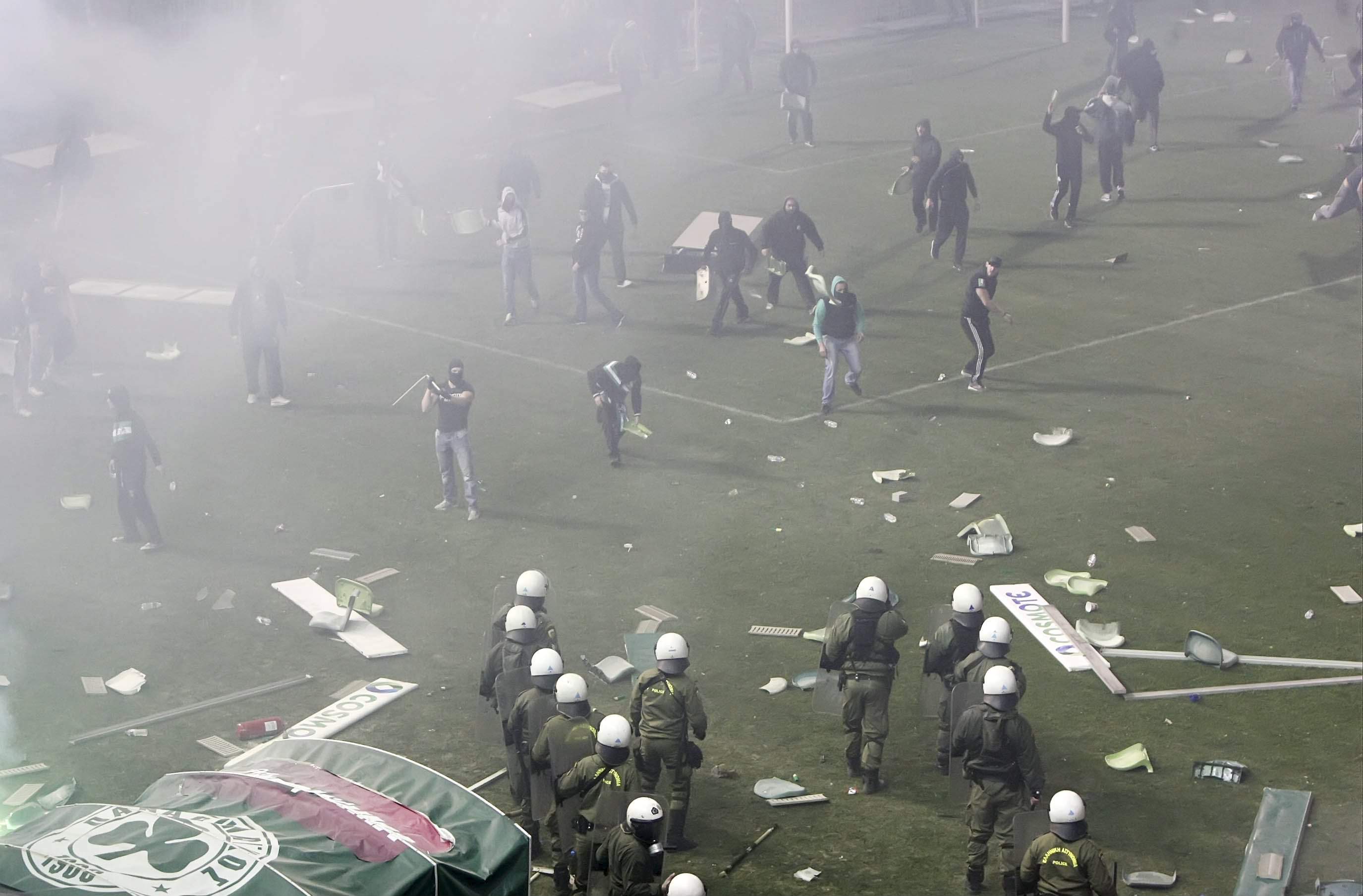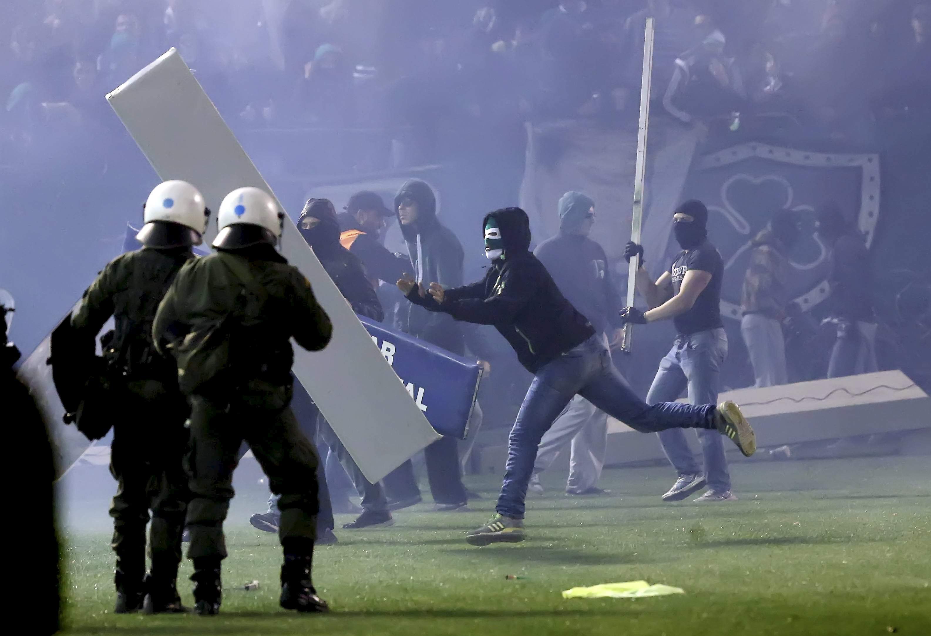 Není derby jako derby. V Řecku je rivalita mezi fanoušky Panathinaikosu Atény a Olympiakosu Pireus pověstná. V sobotu jejich vzájemný zápas ani nezačal. Podívejte se proč. [fve]https://youtu.be/DNIP9cK4Qrg[/fve] Fanoušci Panathinaikosu se střetli s policií ještě před staddionem, hráče Olympiakosu pak zasypali nejrůznějšími předměty. Světlice zasáhla do nohy Islanďana Alfreda Finnbogasona, který řádění točil na mobilní telefon. [fve]https://youtu.be/_R-v9H3dFA4[/fve] Rozhodčí zápasu Andreas Pappas čekal ještě hodinu po oficiálně naplánovaném výkopu. Nakonec ale z bezpečnostních důvodů utkání ani nezahájil. To však vyvolalo jen další násilí. Předseda Panathinaikosu teď zvažuje rezignaci. Klubu kromě pokuty velmi vážně hrozí také zavření stadionu na několik utkání a odečet bodů.