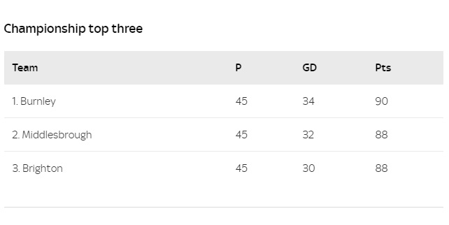 Klíčový zápas hraje na domácí půdě a stačí mu i remíza. Oba týmy mají zatím 88 bodů, ale Middlesbrough se pyšní lepším skóre, které bude v případě shody rozhodovat. Brighton s dalším Čechem Jiřím Skalákem tedy potřebuje na Riverside Stadium vyhrát.