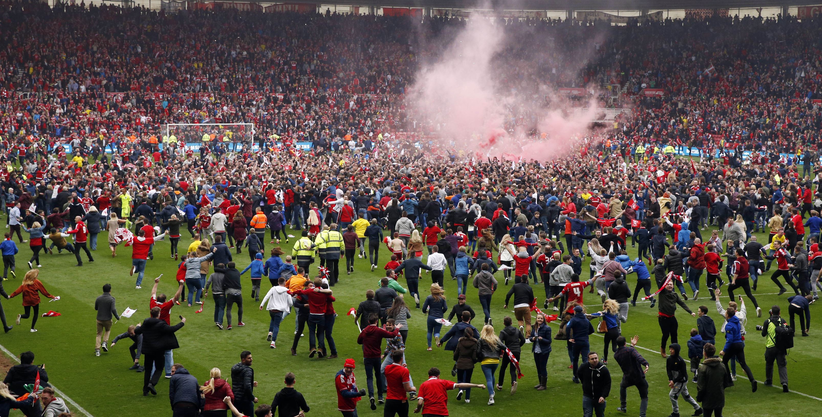 Bylo neskutečné, když jsme po závěrečném hvizdu naběhli za spoluhráči a najednou se ze všech stran vyrojili fanoušci. Skřípli nás z obou stran a pak už jsem jen chodil a dělal jednu fotku za druhou. Hráče, kteří se o postup zasloužili nejvíc, fanoušci nosili na ramenou. Byl to velký zážitek. Stačí se podívat na fotky a videa. https://twitter.com/SkyBet/status/729231289258119169