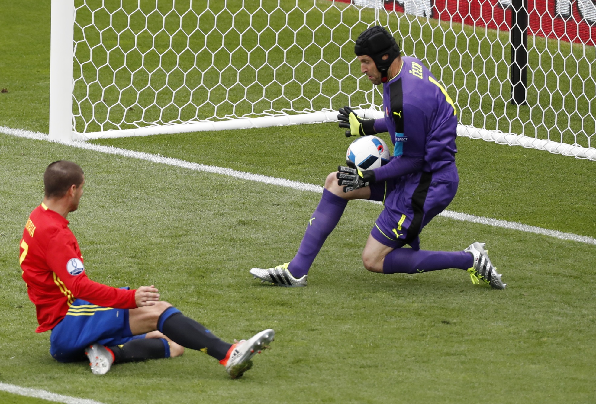Španěl Morata sundal rozhodčího, na brankáře Čecha ale nevyzrál
