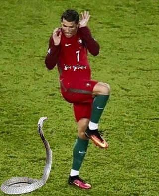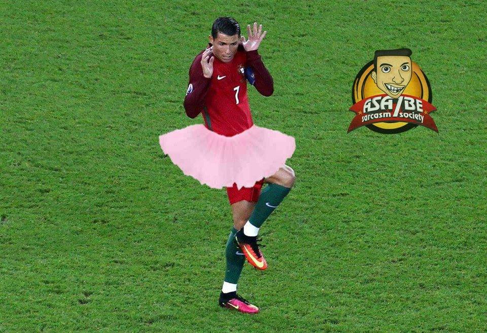 [blog_program_info id="7757224"] Fotoreportéři při utkání zachytili Ronalda v poněkud komické póze, při níž jako by se na trávníku něčeho opravdu velmi polekal. Netrvalo dlouho a fotbaloví fandové na internetu si na v posledních dnech nebohém Ronaldovi zase pořádně pochutnali. Některým jeho neobvyklá pozice připomínala baletku, objevilo se také hodně „ustrašených“ montáží. Třeba jedna velmi bizarní, s Blaisem Matuidim připomínajícím krtka vylézajího ze země, nebo s Joachimem Löwem, s nímž si v poslední době nikdo nechce podávat ruku. https://twitter.com/the_real_Bocs/status/744615935890296832 https://twitter.com/Gwel1/status/744586181669699584