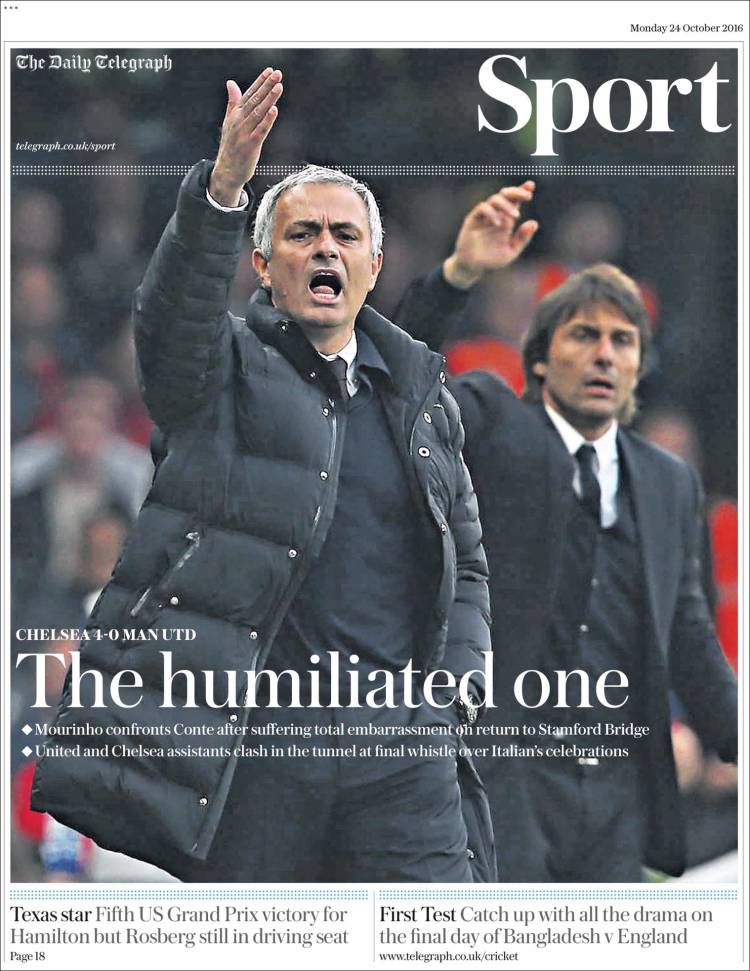 José Mourinhovi návrat na Stamford Bridge, kde dlouhá léta vedl Chelsea, vůbec nevyšel. Jeho svěřenci z Manchesteru Unitedpropadli ve všech směrech a prohráli 0:4 (VIDEO). [blog_gallery id="33035" style="block"] Podvečer hrůzy to byl i pro samotného Mourinha. Fanoušci na tribunách zpívali „You’re not special anymore!“, tedy „Už nejsi výjimečný“. Narážky na přezdívku „The Special One“ si neodpustili ani novináři. Takhle vypadala zadní strana Daily Telegraph. „The humiliated one – Ponížený“ Mourinho na sebe upoutal pozornost ještě jednou akcí. Bezprostředně po utkání při podávání rukou s Antoniem Contem, současným manažerem Chelsea, si Itala přitáhl a něco mu šeptal do ucha. O co šlo? „Nejsem typ člověka, který by se podělil o slova, která mezi námi padla. Zůstane to jen mezi námi. Tedy pokud to neprozradí on,“ řekl Mourinho. Zajímavou verzi rozhovoru přinesl Filippo Ricci, novinář ze Sky Italia. Mourinho údajně káral Conteho za přehnaně divoké oslavy čtvrtého gólu N’Gola Kantého: „Nedělej to za stavu 4:0. Když je to 1:0, je to OK, ale za stavu 4:0 je to ponižující. Není to fér,“ řekl prý Mourinho Contemu. https://twitter.com/SkyFootball/status/790236341661335552 Ten pak prý později reagoval na Mourinhova slova následovně: „Pokud bychom měli ve sportu potlačovat emoce, tak raději zůstaňme doma a věnujme se něčemu jinému, než je práce trenéra.“ https://twitter.com/SkyFootball/status/790229887281790976 [blog_poll_start][poll id="382"][blog_poll_end] Celý zápas uvidíte na O2 TV Fotbal! [blog_program_info id="9590736"] Máte rádi fotbal a rádi byste sledovali přenosy z celého světa? Pořiďte si O2 TV a celý sportovní svět se vám otevře v obýváku, na počítači nebo tabletu. Přímé přenosy, magazíny, zpravodajství – to vše najdete na sportovních stanicích v nabídce naší O2 TV.