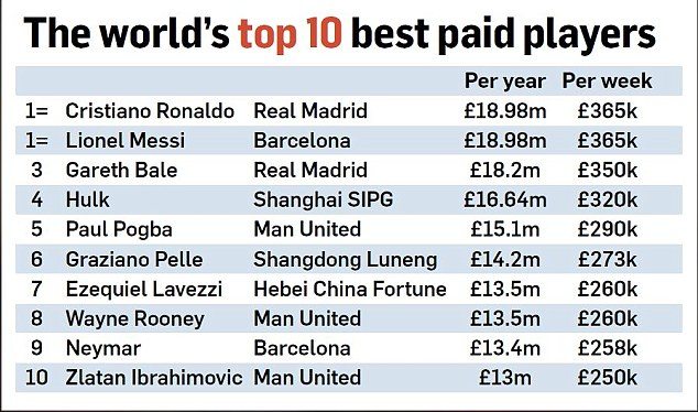 Do první pětky platových žebříčku klubů se vešly i Barcelona, Manchester City, Real Madrid a Chelsea! Ani tito giganti však nemají na basketbalisty z Ameriky! Celé tabulce jasně vévodí loňští šampioni NBA Cleveland Cavaliers, kde hrají hvězdy jako LeBron James nebo Kyrie Irving. Asi vás nepřekvapí, že lídry žebříčku fotbalistů samotných jsou Lionel Messi a Cristiano Ronaldo! Ti si sami vydělají 18,98 milionů liber ročně (596 milionů korun).