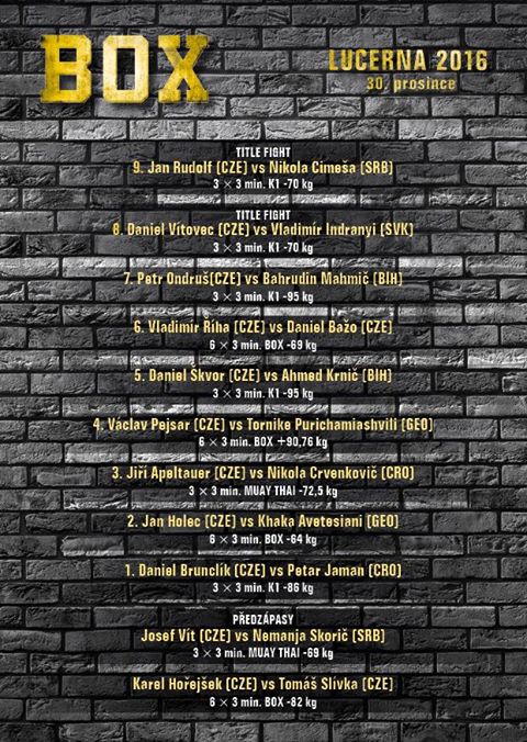 Velkým tahákem bude zápas podle pravidel K1 ve váze do 83 kilogramů. Bude to odveta, kterou organizátoři okořenili o titulovým zápasem o pás CSFu. Proti sobě v ringu nastoupí Daniel Vítovec a Vlado Indranyi. Oba bojovníci si to už jednou rozdali a zápas to byl excelentní a do posledních vteřin nebylo jisté, kdo zvítězí. Nakonec rozhodnutím rozhodčích vyhrál Dan, ale Vlado tak toužil po odvetě.