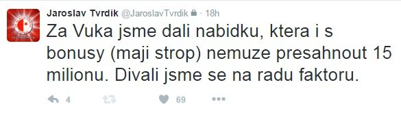 Podle serveru www.transfermarkt.de je současná Vukadinovičova cena 700 tisíc eur, tedy necelých 19 milionů korun. Zlín údajně požaduje více než dvojnásobek. Řekl bych, že je to z jeho strany licitace. Chápu, že se nechce dál oslabovat. Za poslední rok přišel o několik klíčových hráčů: Lukáše Železníka, Štěpána Koreše, Tomáše Poznara, Harise Harbu a Tomáše Hájka. To už je pořádné puštění žilou. Ševci se právem bojí, aby nezažili takový propad jako loni na jaře. Na druhou stranu, mít v kádru naštvaného a demotivovaného hráče, který cítí, že ho v ideálním fotbalovém věku připravili o životní šanci, to také není žádný med. Tipuju, že oba kluby se nakonec sejdou někde na půl cesty a dohodnou se. A pokud ne, Vukadinovič se přestupu do velkého klubu stejně dočká. A dost možná i reprezentace. Doufám, že té české, která má o podobné moderní typy hráčů velkou nouzi. Zvláště když o něj Srbové nejeví valný zájem. To by samozřejmě investované peníze patřičně zhodnotilo.