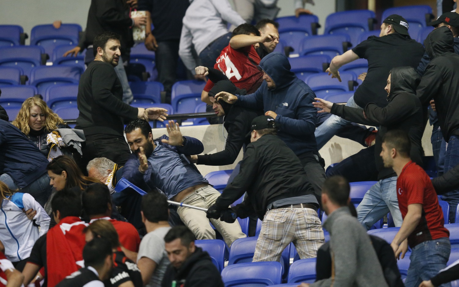 Chuligáni Besiktase dorazili na zápas v Lyonu v hojném počtu a problémy dělali už před stadionem. Na tribuny se jim pak podařilo pronést pyrotechniku, kterou odpalovali a přinutili příznivce z okolních sektorů utéct na trávník. https://twitter.com/TrustyTransfers/status/852598682830733312 V té chvíli to vůbec nevypadalo, že by se měl ve čtvrtek v Lyonu hrát fotbal. https://twitter.com/ElliotHackney/status/852597667913977860 Někteří turečtí fanoušci pak (zřejmě na oplátku) čelili útoku francouzských hooligans, kterým bylo jedno, že v sektoru jsou i děti. [fve]https://youtu.be/O1nrRdHSbQE[/fve] Tahle fotografie, jak na vyděšenou holčičku mává berlí jeden z chuligánů, šokovala fanoušky po celé Evropě: Přes veškeré nepokoje zápas se 45minutovým zpožděním přece jen začal.