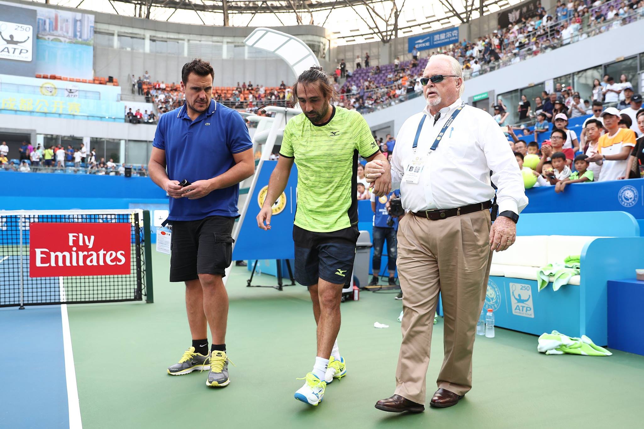 Kypřan Marcos Baghdatis svůj poslední titul slavil v roce 2010. Nyní se probojoval do finále v čínském Čcheng-tu a stál proti němu hratelný soupeř z Uzbekistánu, Denis Istomin. Finálové klání však nemělo příliš dlouhého trvání. Zlomový byl šestý gem, kdy v jeho průběhu zraněný Baghdatis musel zápas skrečovat. Při svém servisu prohrával 15:30 a ihned po podání věděl, že je zle. Míček už nedokázal odehrát a chtěl zamířit k lavičce, aby se mohl posadit. Tam ale nedošel a svalil se na zem, kde se svíjel v bolestech. K bezmocnému Baghdatisovi se ihned vydal jeho soupeř, který přelezl síť a snažil se zjistit, co se stalo: [fve]https://youtu.be/3RB0TnxYNj8[/fve] Brzy bylo zřejmé, že Baghdatis v utkání pokračovat nemůže a finále tak kvůli bolestem v oblasti pravé kyčle a zad musel vzdát. Jednatřicetiletý Istomin se tak stal vítězem turnaje a připsal si na své konto druhý titul na okruhu ATP. Oslavy s trofejí si ale určitě představoval po zcela jiném průběhu utkání.