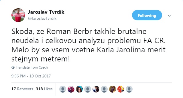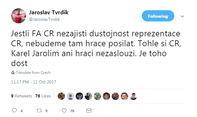 Už v úterý Tvrdík na Twitteru reagoval na Berbrovo vystoupení ostře. Ve středu pak ještě přitvrdil. „Nestačí sportovní neúspěch, ostuda ještě musí pokračovat. Nechutné. Jestli má jít Jarolím, ať se vedení FA ČR přidá,“ napsal a přidal odkaz na reportáž, ve které se probírá Jarolímův plat. Mimochodem, kouč národního týmu si podle zjištění Seznam.cz má přijít na 641 tisíc korun měsíčně a jde o prvního reprezentačního trenéra, jehož plat byl takto přesně zveřejněn. Nejen Tvrdíkovi se tak zdá, že jde jen o hru, která má mezi veřejností vzbudit závist. Zvlášť, když Berbr uvedl, že do července se Jarolímova smlouva, kterou s ním uzavřel ještě bývalý předseda asociace Miroslav Pelta, prakticky nedá vypovědět. „Chci slyšet, co uděláme s celým českým fotbalem. Diskuzi expertů. Vizi budoucnosti. Odmítám hru na závist k platu trenéra,“ napsal Tvrdík. Sám Jarolím se ohradil proti tomu, že by jeho kontrakt nešel vypovědět. A postěžoval si i na to, že nařčení, která proti němu Berbr na tiskové konferenci vznesl, například, že nominace vznikají pod tlakem hráčských agentů, mu nikdo na výkonném výboru nesdělil osobně, aby na ně mohl reagovat. I proto Tvrdík označil ve svých příspěvcích chování vedení FAČR za ostudné a nedůstojné. Navrch přidal poměrně ostrou výhrůžku. Pokud asociace nezajistí důstojnost reprezentace, nebude tam prý Slavia posílat své hráče! To ovšem není zase tak snadné, jak to vypadá. V případě, že by Slavia opravdu nepustila hráče na reprezentační sraz, vystavila by je trestu od FIFA. Podle pravidel má totiž hráč povinnost připojit se k týmu, pokud je nominován. Od času 8:00 tisková konference, na které zazněla kritika Romana Berbra na reprezentačního trenéra Karla Jarolíma:Nenechte si ujít šlágr HET ligy Sparta - Plzeň v neděli od 17.30 na O2 TV Sport a O2 TV Fotbal!