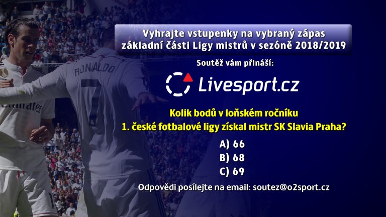 O2 TV Sport ve spolupráci s Livesport.cz připravil pro diváky soutěž o vstupenky na hvězdnou Ligu mistrů. Stačí poslat správnou odpověď na naši soutěžní otázku a mít při losování trochu toho pověstného štěstíčka. Své odpovědi zasílejte pouze na adresu soutez@o2sport.cz s předmětem Liga mistrů. Ze všech správných odpovědí vylosujeme vítěze, kterého oznámíme ve studiu 26. května 2018 při finále Ligy mistrů.