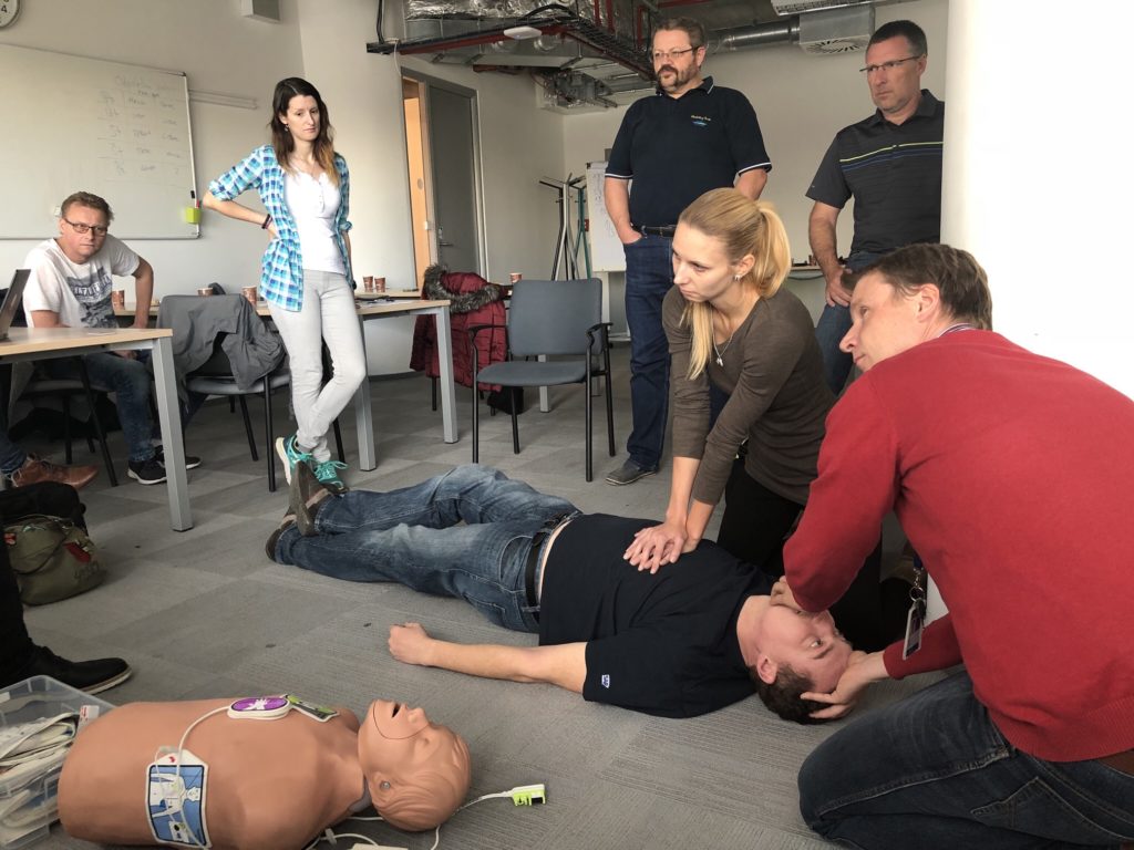 Minulý týden se třicet zaměstnanců O2 z pražské centrály i z regionů zúčastnilo v našem tréninkovém centru školení první pomoci a obsluhy automatického defibrilátoru vedeného profesionálním zdravotnickým záchranářem Petrem Tomášem. Že nevíte, co si pod pojmem defibrilátor představit? Hned vám všechno vysvětlíme. Už v létě jsme vás informovali o rozšíření aplikace O2 SOS, která automaticky oslovuje proškolené dobrovolníky v okolí pacienta se srdeční zástavou a pomáhá mu zajistit první pomoc dříve, než je k němu schopna dojet nejbližší sanitka nebo doletět vrtulník. Průměrná doba dojezdu sanitky je totiž v tuzemsku devět minut. A to je v případě zástavy oběhu pro zachování plnohodnotného života pacienta často pozdě. Proto hraje důležitou roli první pomoc od lidí v okolí postiženého. Užitečnou pomůckou je v tomto případě již zmiňovaný automatický defibrilátor. Při jeho použití se totiž u pacienta zvyšuje šance na přežití o padesát až sedmdesát procent. Právě proto jsme se v rámci projektu O2 SOS rozhodli jeden pořídit na recepci naší centrály na pražské Brumlovce. O jeho umístění informujeme i pražskou záchrannou službu, která ho zaeviduje do své databáze, díky čemuž o ní budou vědět volající na tísňovou linku, nacházející se v okolí naší budovy. Zdravotníci v České republice vyjeli v loňském roce zhruba k devíti tisícům případů srdeční zástavy. Díky fungujícímu systému počet zachráněných pacientů stále roste. Proto záchranář Petr Tomáš školení zakončil slovy: „Nebudu vám přát, abyste se do situace, kdy budete muset poskytnout první pomoc, nikdy nedostali. Naopak vám přeju, abyste měli možnost někomu odborně pomoct a zažít ten pocit, když dáte člověku šanci přežít.“