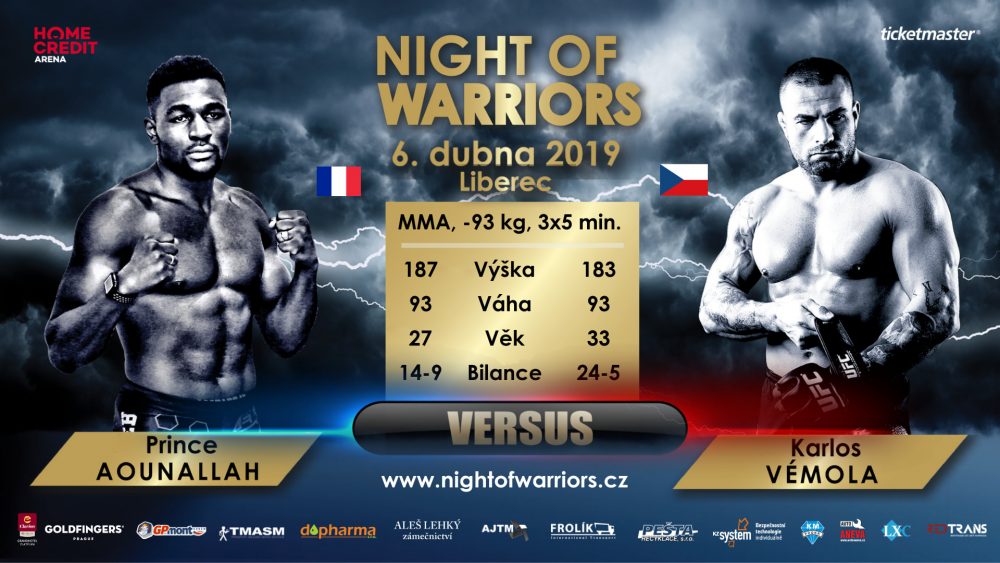 Na co se diváci nepochybně těší s velkým očekáváním, to je bitva mocného Terminátora, který bude chtít předvést svou pověstnou „vémolici“. Na druhou stranu barikády se proti němu postaví francouzský sok Prince Aounallah, s nímž už se domácí publikum jistě velmi dobře zná. Jedná se o zápasníka, co nebral vůbec žádné ohledy na to, v jaké zemi se nachází. Prostě sem přijel, zlikvidoval dva české borce a zase odjel. Na to ale musel zareagovat Karlos Vémola, který striktně a jasně dodal: „Už mě nebaví, jak si sem jezdí nějakej francouzskej princ mlátit český kluky!" A tato věta v pozadí odstartovala sérii událostí, jež vyvrcholí sobotním večerem právě na Night of Warriors v Liberci. Už dříve došlo k pokusům svést oba borce dohromady, avšak o slovo si bohužel řekla nevypočítavá zranění, a proto si onen hvězdný duel užijeme až teď. Budou zase lvi žrát první a přijde TKO v prvním kole? OKTAGON 11: Kozma králem welteru, Petrášek padl i v odvetě. A co debut Vémoly?