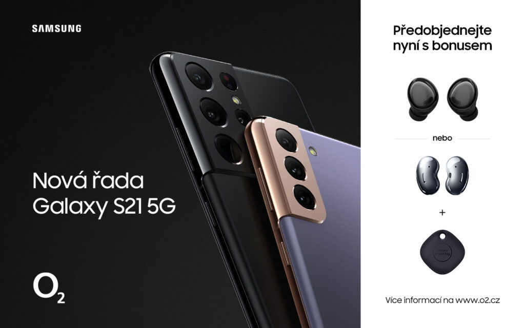 Operátor O2 připravil pro zájemce o smartphony z očekávané modelové řady Samsung GALAXY S21 možnost si tyto novinky předobjednat už nyní. U O2 jsou dostupné ve variantách S21 5G, S21+ 5G, S21 Ultra 128GB 5G a S21 Ultra 512GB 5G. Zakazníci získají k vybraným modelům jako bonus sluchátka. Telefony zájemcům operátor dodá pohodlně domů s dopravou zdarma. Model Samsung GALAXY S21 disponuje 6,2palcovým LTPS displejem s rozlišením FHD+ a plynulou obnovovací frekvencí 120 Hz. Větší S21+ se stejnými parametry má úhlopříčku 6,7 palce. Nejvyšší model S21 Ultra s úhlopříčkou 6,8 palce je vybaven dvěma teleobjektivy. První nabídne 10 megapixelů a světelnost f/2.4, druhý opět 10megapixelů a světelnost f/4.9. Zájemci se mohou těšit i na laserový autofocus. Na své si přijdou i milovníci selfie snímků - čelní kamera má u modelu ULTRA 5G 40 megapixelů a světelnost f/2.2. K modelu S21 Ultra dostanou zájemci jako bonus sluchátka GALAXY Buds Pro. K telefonům S21 5G a S21+ 5G získají sluchátka GALAXY Buds Live. Ke všem smartphonům z nové řady budou mít zdarma chytrý lokátor v podobě přívěsku GALAXY SmartTag. Více informací o všech modelech najdou zájemci na tomto webu, kde je zároveň možné je předobjednat.