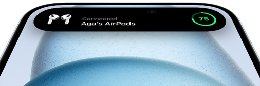 Nový iPhone 15 má nově zaoblené hrany. Super Retina XDR displej je na slunci až dvakrát jasnější než displej jeho předchůdce.Stejně jako iPhonu 14 Pro má funkční Dynamic Island v displeji. Tento „ostrůvek“ ukazuje upozornění a další živé aktivity jako je třeba odpočítávání, kdy přijede váš taxi nebo zobrazuje přehrávač hudby.
