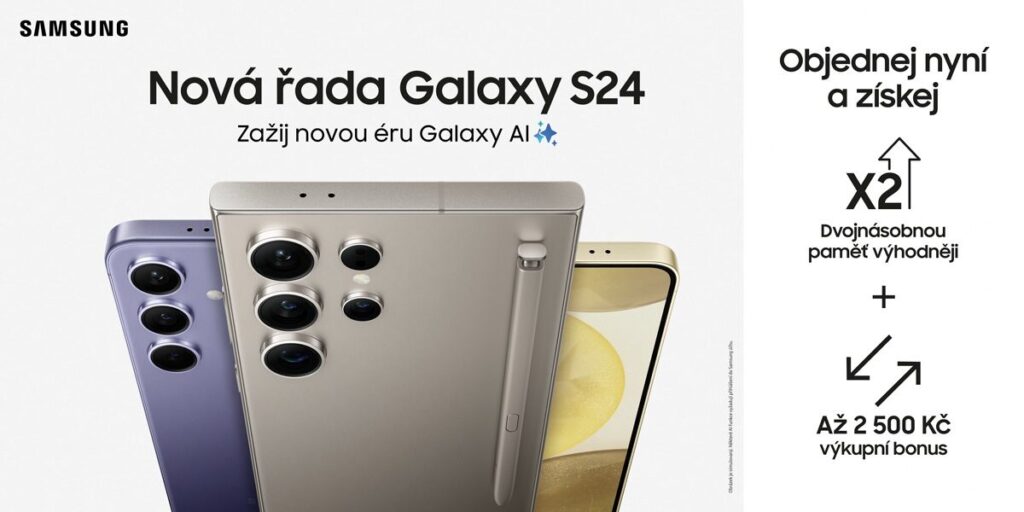 Operátor O2 spustil možnost objednání už teď. Pokud do 30. ledna 2024 stihnete jakýkoliv model z řady S24 objednat, můžete také výrazně ušetřit. Platí totiž oblíbená nabídka „vyšší kapacita za nižší cenu“, takže u Galaxy S24 je 256 GB kapacita za stejnou cenu jako u modelu s pamětí 128 GB. U modelu S24+ a S24 Ultra zaplatíte za 512 GB stejnou cenu jako u kapacity 256 GB. Zároveň při výkupu starého telefonu na novysamsung.cz do konce ledna dostanete výkupní bonus až 2 500 korun.
