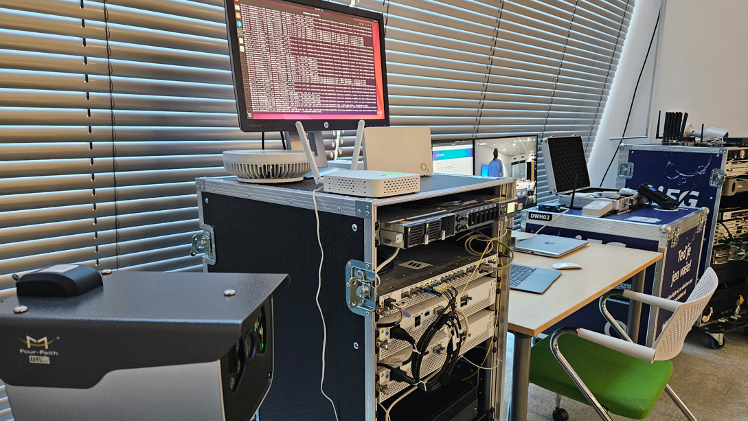 Další ukázka zahrnovala RedCap modem, na kterém bylo provedeno měření rychlosti. RedCap zařízení bylo připojené na privátní 5GNR síti, která vysílá na pásmu 3700 MHz v šířce pásma 100 MHz. RedCap modemy využívají pro svůj provoz jen část dostupného pásma, v tomto případě pouze 20 MHz, na rozdíl od standardních 5G modemů, které využívají celou šíři pásma. To sice znamená, že dosahované rychlosti jsou nižší a na úrovni srovnatelné s LTE, to ale je pro řadu aplikací a komunikačních úloh zcela dostačující.