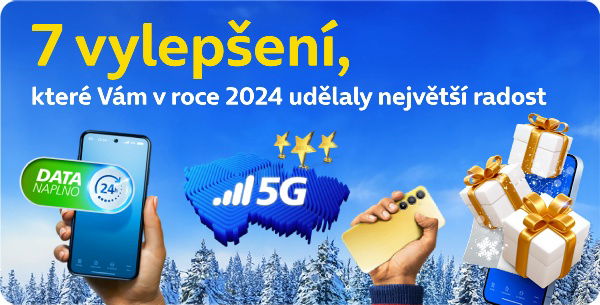 Protože spolehlivost naší 5G sítě je pro vás důležitá, v roce 2024 jsme razantně zvýšili její pokrytí. Nyní je dostupná pro 97 % populace na 86 % území. V posledních dnech roku jsme také zmodernizovali přesně 4 000. vysílač v České republice. Najdete ho v Lerchově ulici v Brně na střeše základní školy. Dostupnost jsme také podpořili nabídkou zvýhodněných 5G telefonů, které si můžete pořídit i jednoduše na splátky.