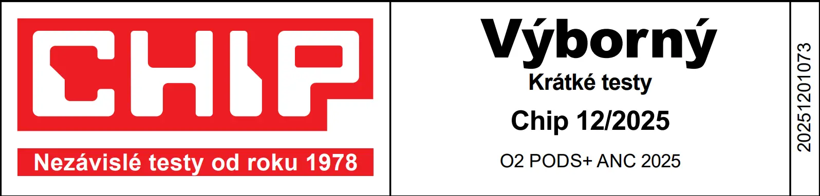 - Sluchátka O2 pods+ 2025 s ANC technologií
